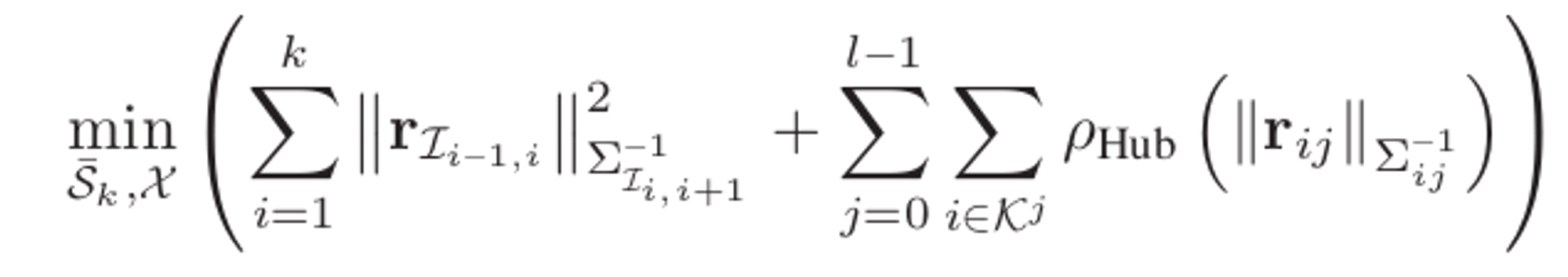 → inertial and visual 파라미터를 얻고 나면, reprojection error(우항)와 IMU residuals(좌항)를 cost로 joint visual-inertial optimization 수행