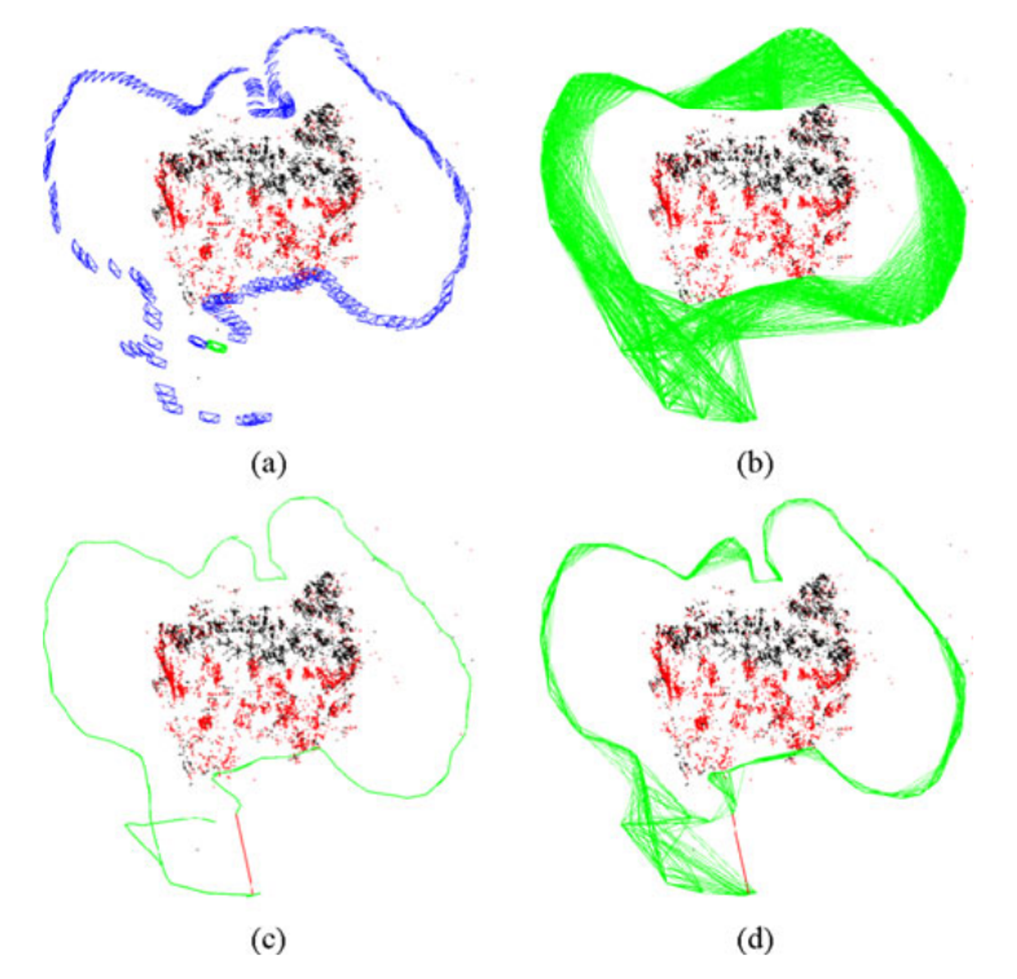 (a) keyframes (b) covisibility graph (c) spanning tree (d) essential graph