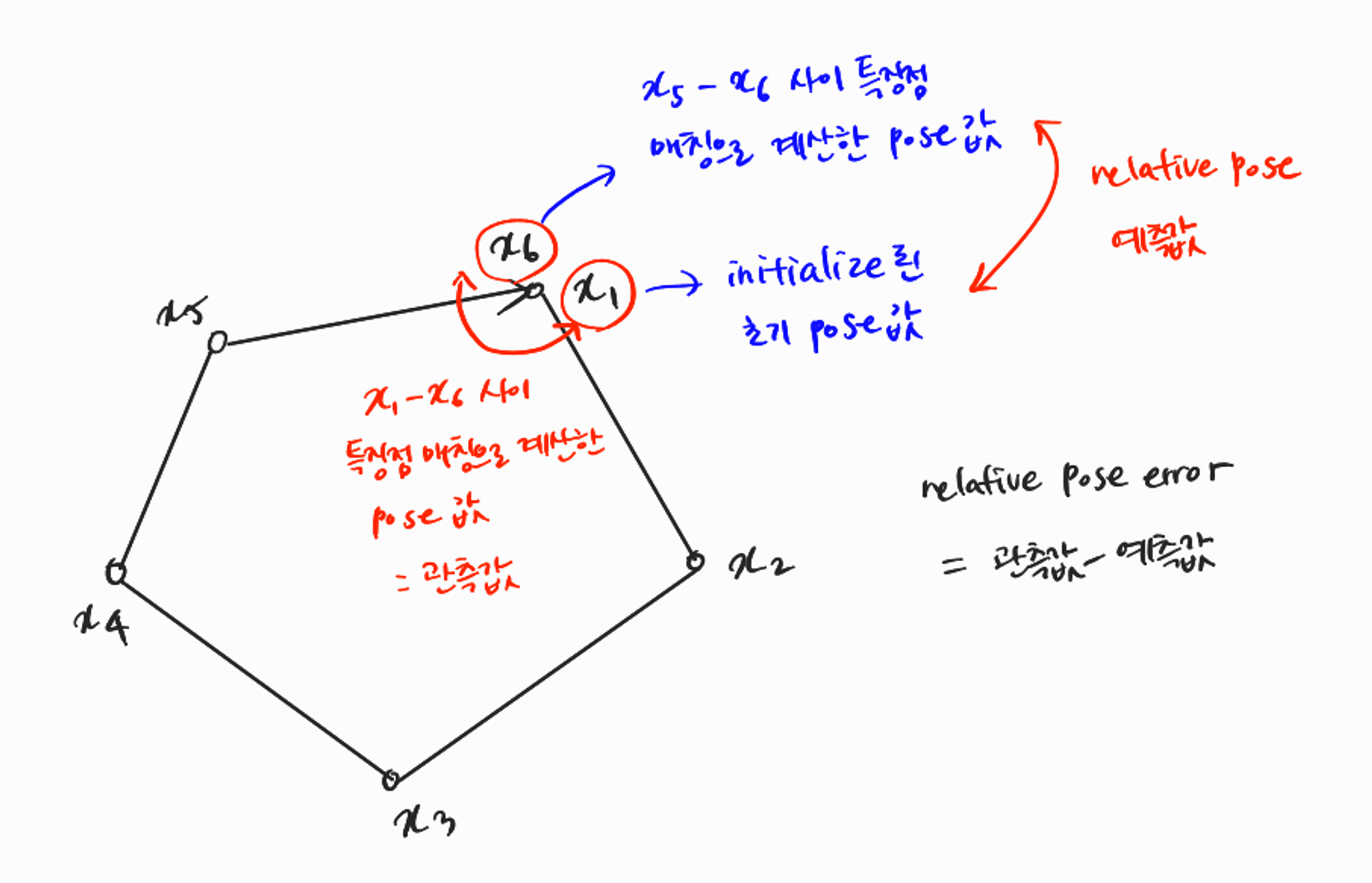 : relative pose error값을 cost로 누적된 drift를 최적화하는 알고리즘, 카메라의 포즈만 변경하고 map points는 최적화하지 않는다.