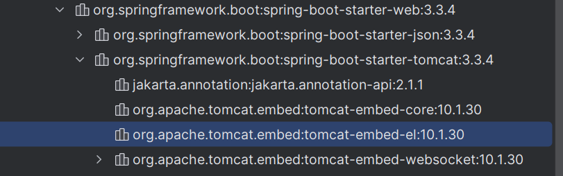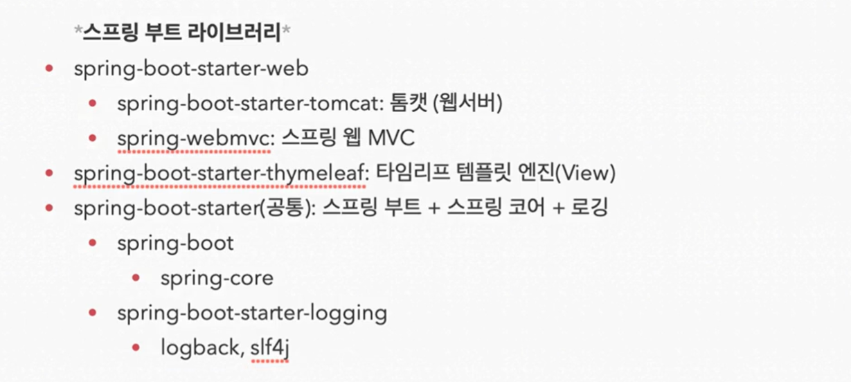 Spring은 다음과 같이 필요한 라이브러리를 가져올 때 의존관계에 있는 다른 다양한 라이브러리들을 한꺼번에 가져옴