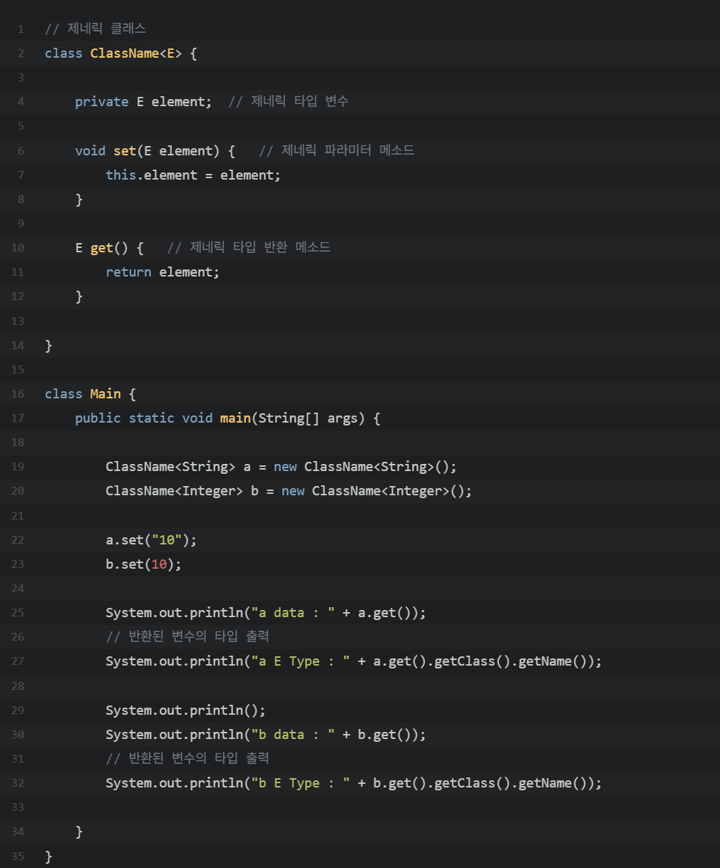제네릭 클래스의 활용 예시는 다음과 같다.