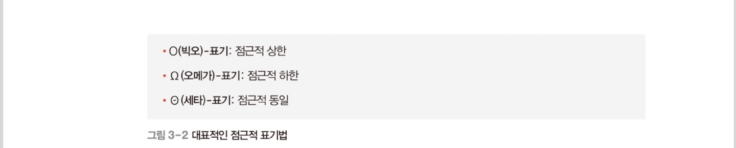 점근적 복잡도에는 다음과 같이 다음 세 개의 표기가 대표적이다.