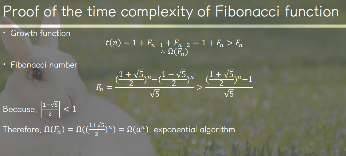즉, 팩토리얼 계산의 시간 복잡도는 O(n)이 된다. 예외적으로, 거듭제곱 계산의 시간 복잡도는 O(log n)이다.