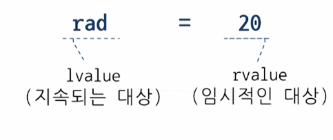프로그램이 실행되는 과정에서 처리되는 값이 어떤행위(입력, 연산 등) 에 따라 그 값이 변할 수 있는 메모리 내의 저장공간 지정