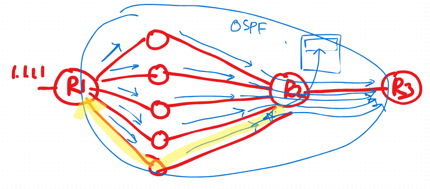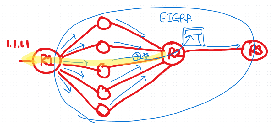 - R2는 라우팅테이블에 5개의 경로 중 최선의 경로만 표시하고, 그 경로만 R3에게 전달해줌