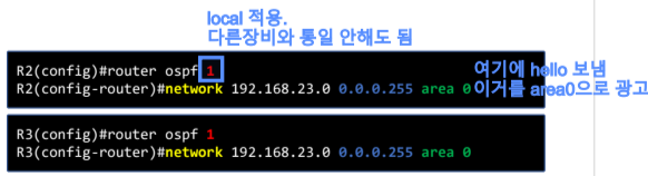 - Network 명령을 통해 Network 광고 및 OSPF 활성화
