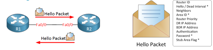 - OSPF를 구성하면 라우터는 OSPF 활성화된 인터페이스로 Hello 패킷을 송신