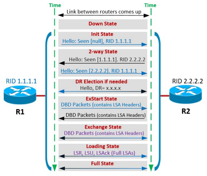 - Link-state 정보를 주고 받기 위해서는 인접 장비와 Neighbor 관계 형성 필요