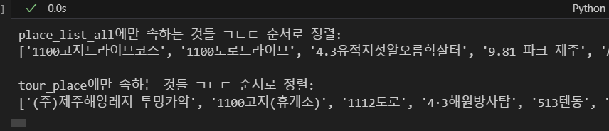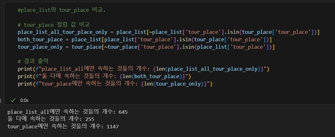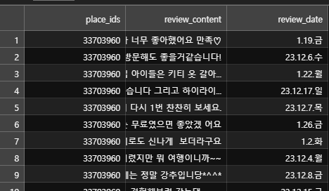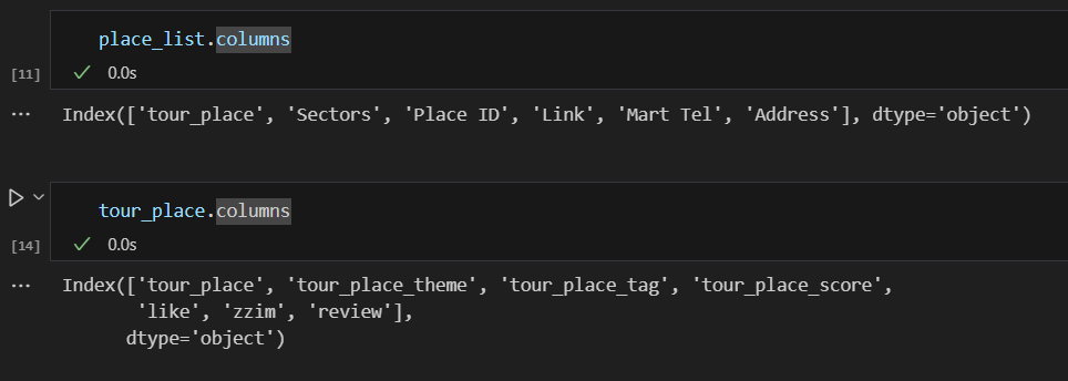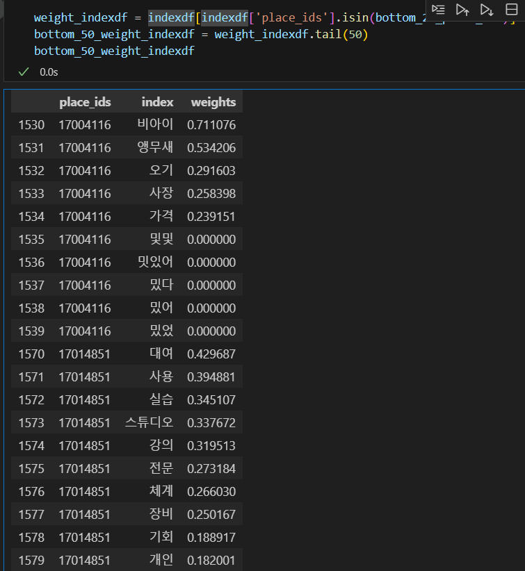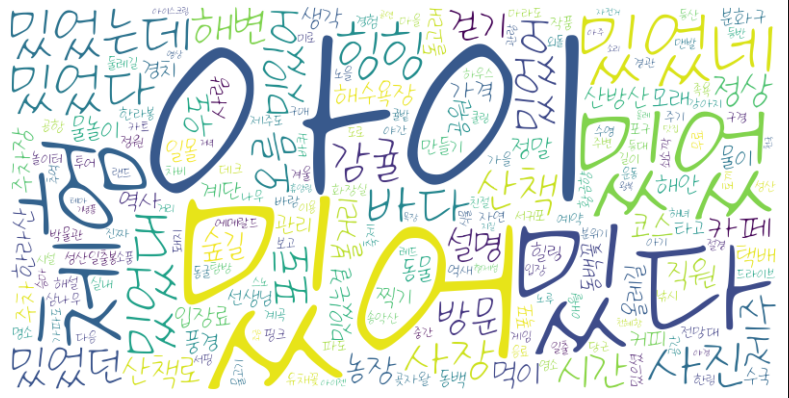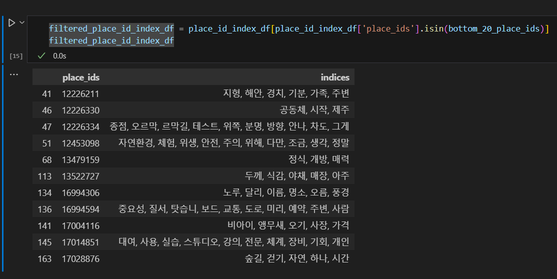 제일 위, 즉 오래되고 리뷰가 많은 데이터들은 아주 명사들이 잘 출력이 된 반면에 최근에 올라오고 리뷰가 적은 관광지들은 아주 형편이 없더군요.