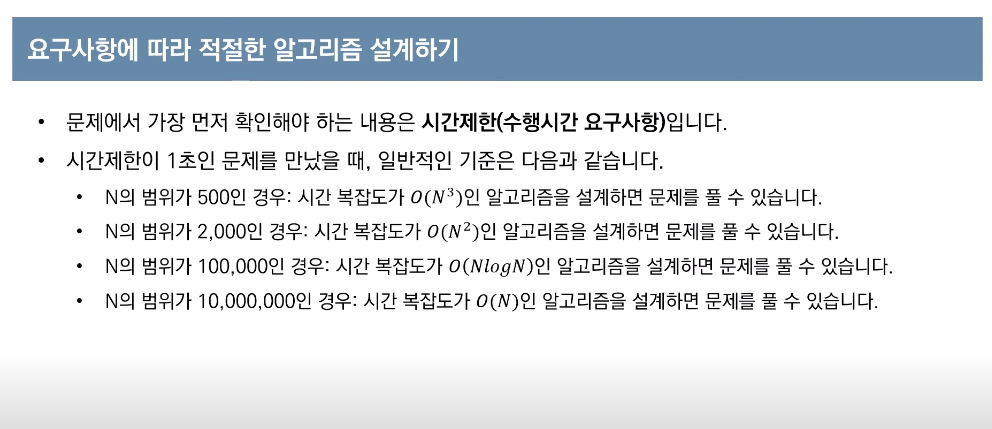 - 즉, 수행시간 요구사항이 어느정도인지 정확히 캐치하는 것이 중요.