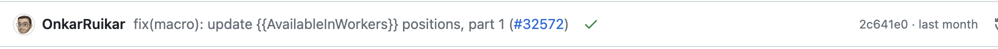 번역된 문서가 en-US 문서에 대해 얼마나 뒤쳐져 있는지 알 수 있는 마땅한 방법이 없습니다. l10n.sourceCommit 메타데이터를 추가하여 현재 문서가 명시된 en-US의 hash 까지 최신 상태를 유지하고 있음을 나타낼 수 있습니다. (참고: How to indicate "content parity" of localized documents vs en-US counterparts?)
