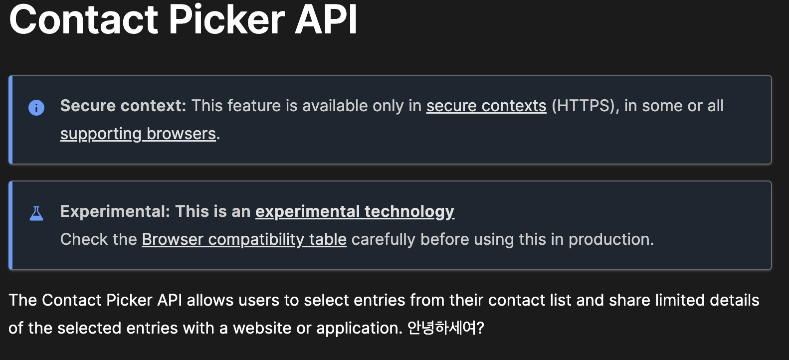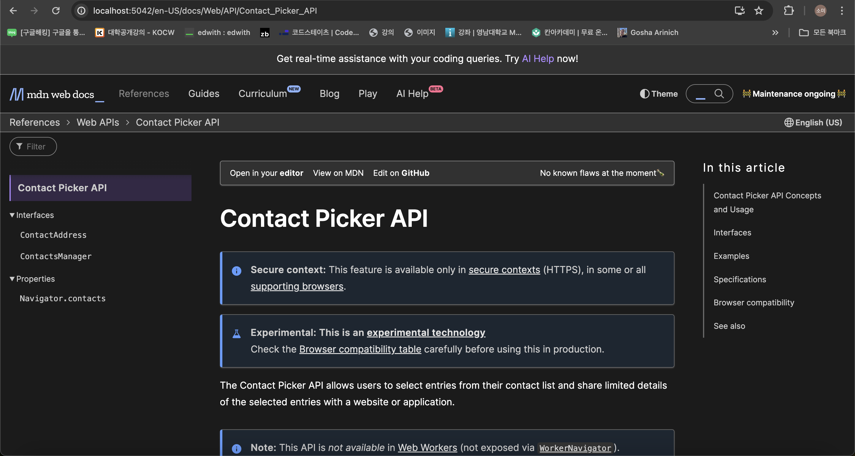 주소창을 주목하라. 난 지금 '/docs/Web/API/Contact_Picker_API에 와있다. vs 코드에서 files/web/api/contact_picker_api/index.md에 가봐라. 가서 아무 문장이나 편집해봐라.