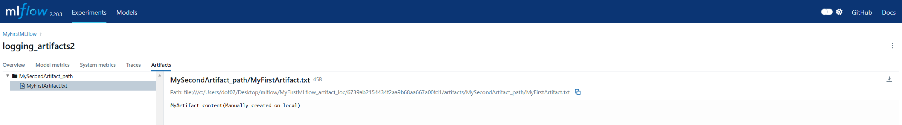 mlflow.log_artifact(local_path="MyFirstArtifact.txt"