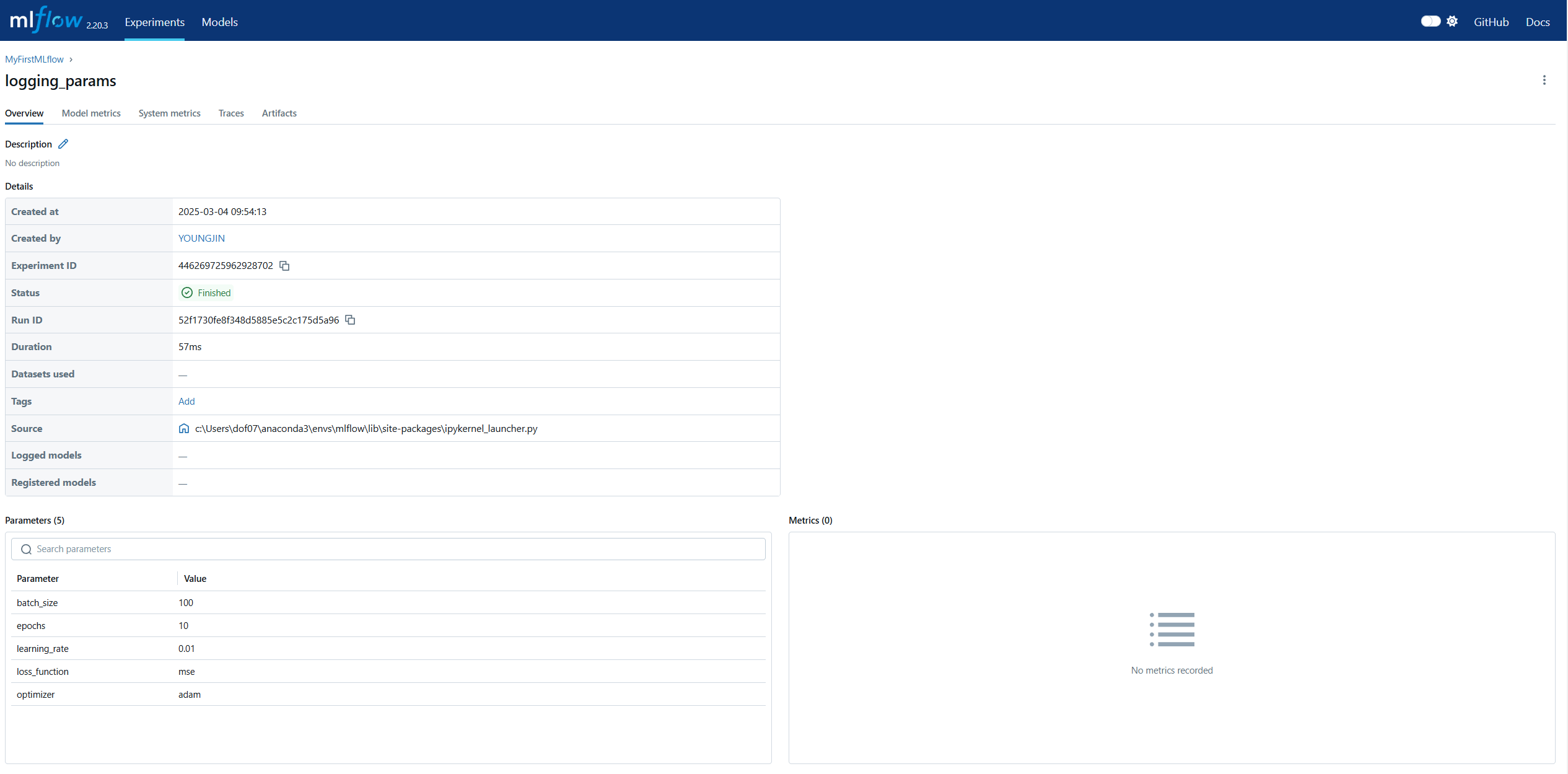 with mlflow.start_run(run_name="logging_params", experiment_id = experiment.experiment_id) as run: