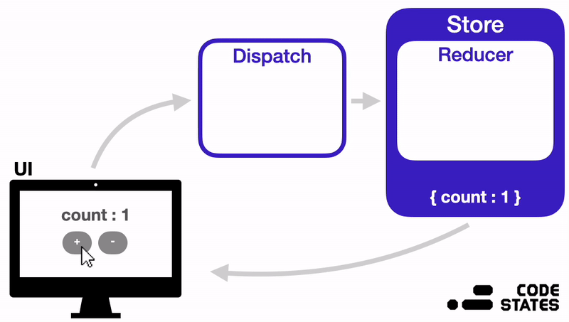 3-Dispatch 함수는 Action 객체를 Reducer 함수로 전달해줍니다.