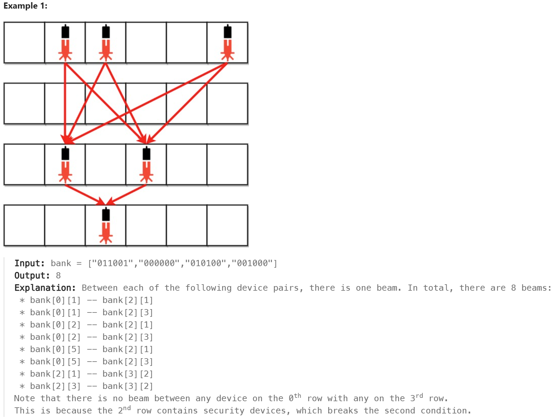 각 행마다 1이 몇개씩 있는지를 세고, 이전과 이후 행의 곱을 차례로 더하는 방식으로 코드를 짰다.