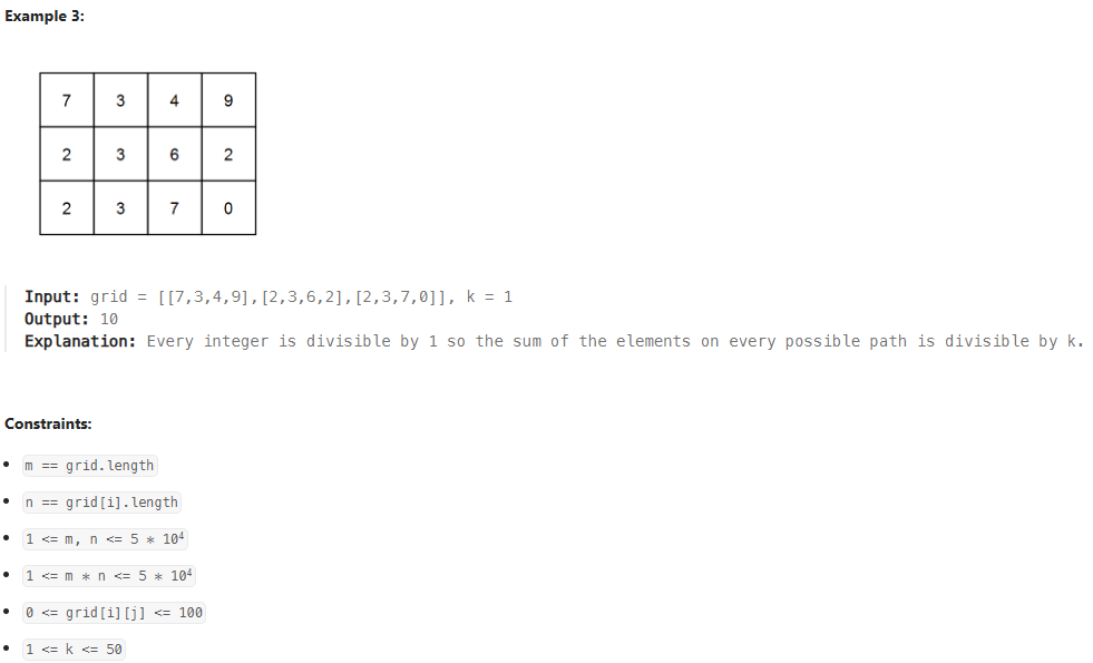 # 이 위치의 값 grid[0][0]을 더했을 때, 나머지 상태는 grid[0][0] % k