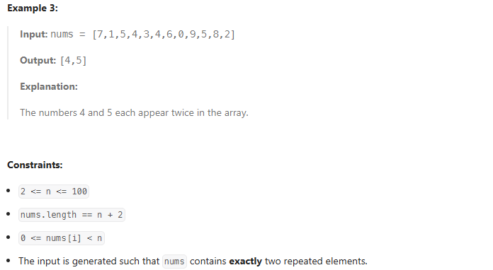 def getSneakyNumbers(self, nums: List[int]) -> List[int]: