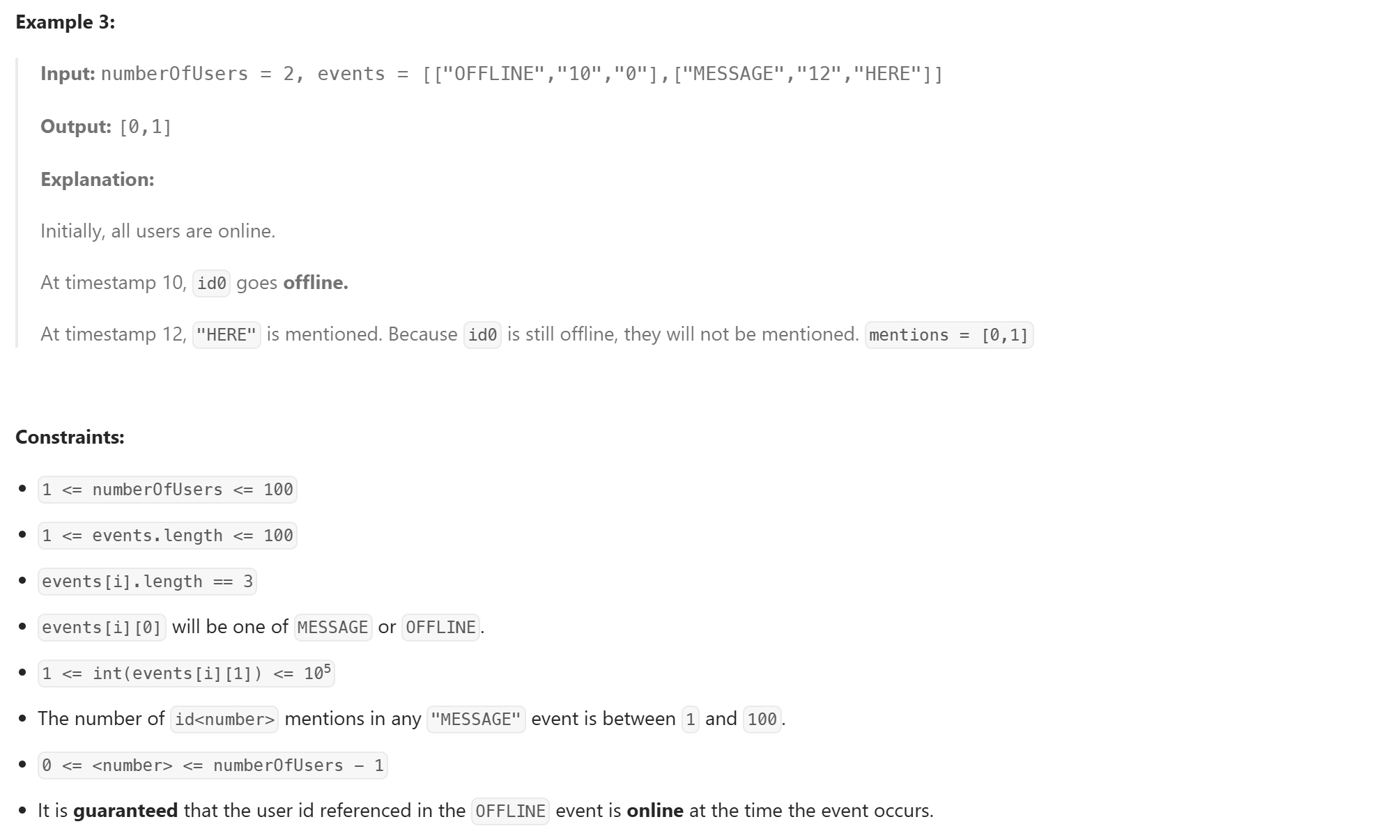 online = set(i for i in range(n)) # 현재 online인 유저 집합 (초기에는 모두 online)