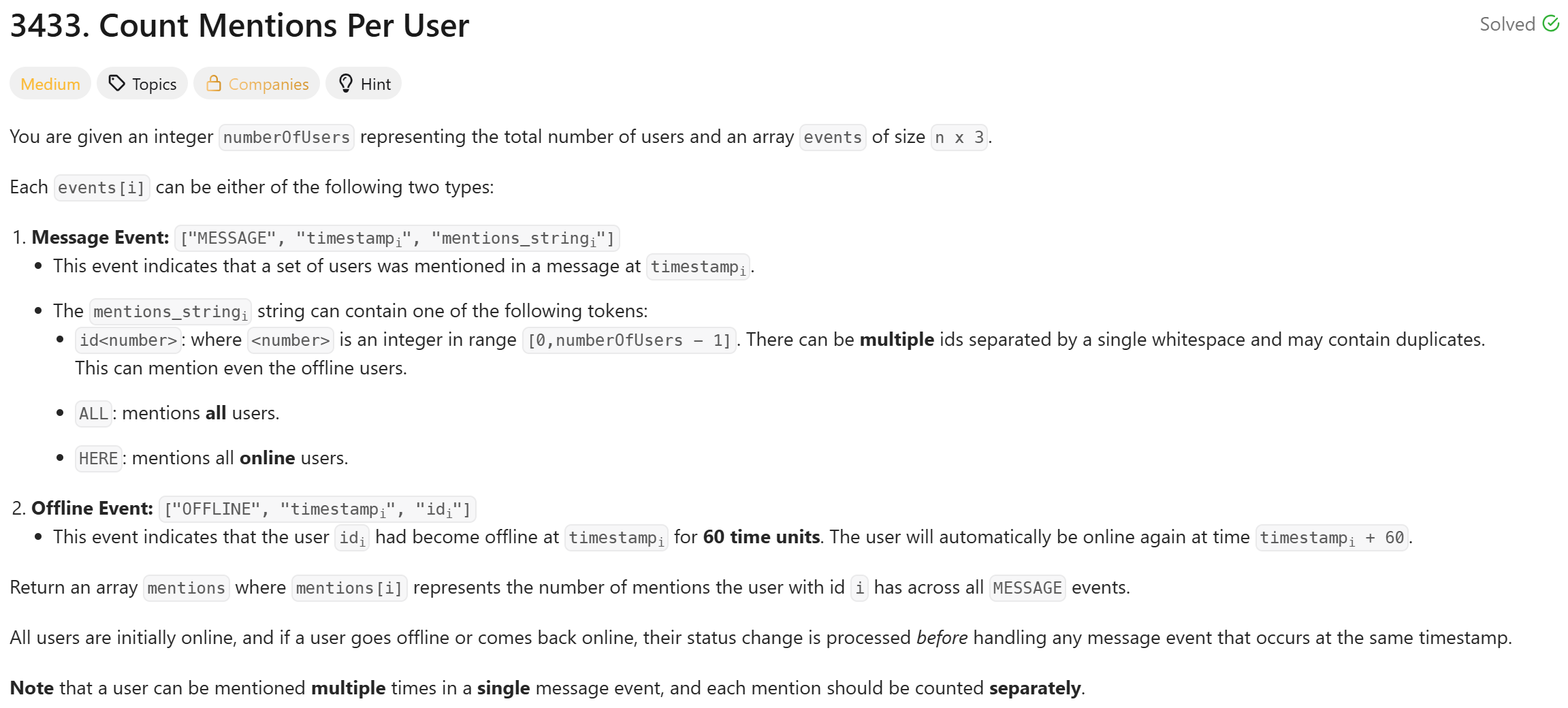def countMentions(self, numberOfUsers: int, events: List[List[str]]) -> List[int]: