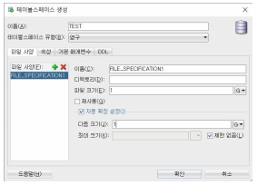 table space 생성 보기 > DBA를 눌러 접속 > 저장영역 > 테이블 스페이스 우클릭 및 새로만들기 > 아래와 같이 입력