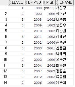 CONNECT BY PRIOR empno = mgr; -- 조인조건