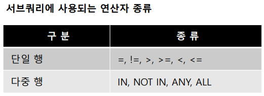 WHERE salary > (SELECT salary FROM emp WHERE ename = ‘양준혁’);