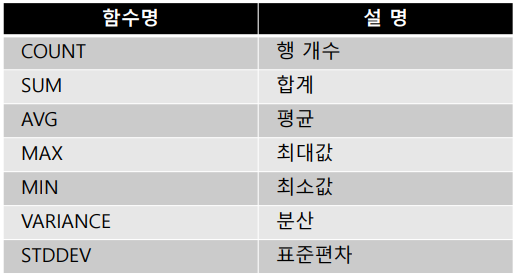 GROUP BY : 데이터 값이 같은 행끼리 묶어서 그룹화 (~~별 데이터 출력)