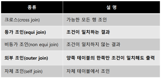 OUTER JOIN : 양쪽 테이블 모두 조건이 만족하지 않아도, 한쪽 테이블의 데이터를 모두 출력 해야 하는 경우 사용