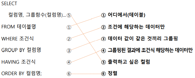 HAVING : GROUP BY의 조건을 지정할 때 사용