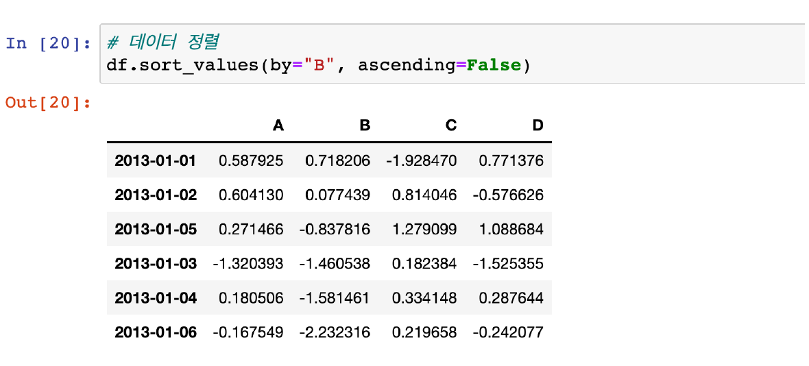 -df.sort_values : 데이터 정렬(ascending = False, 내림차순 정렬)