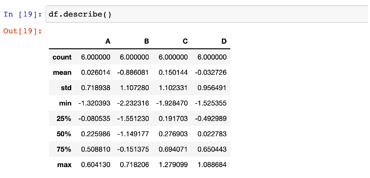 -df.describe() : DataFrame의 통계적 기본 정보 확인