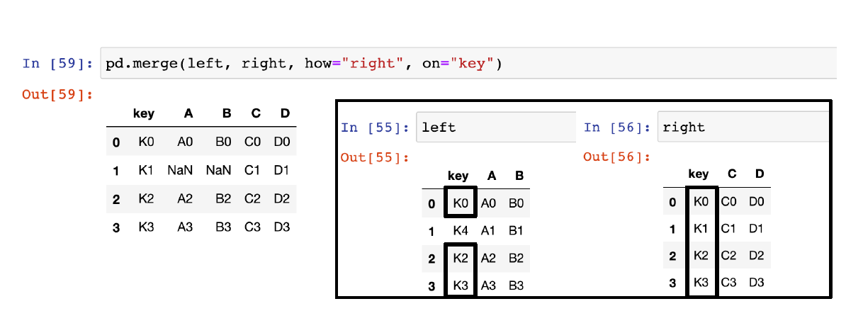 → right에서 key를 기준으로 left 병합