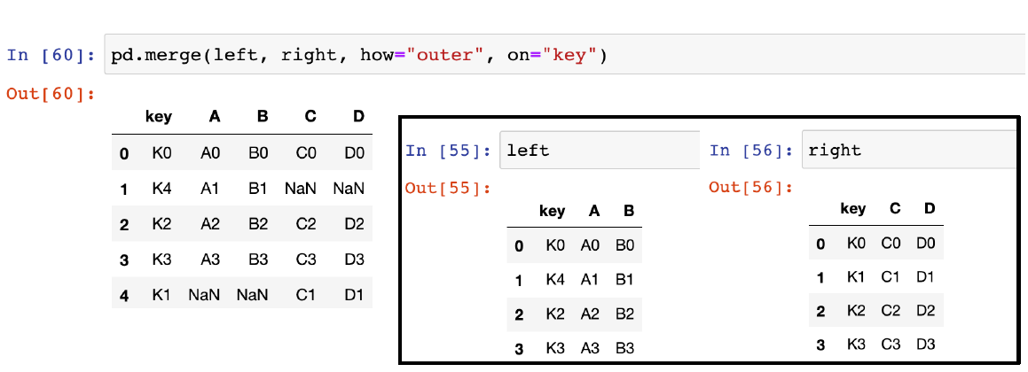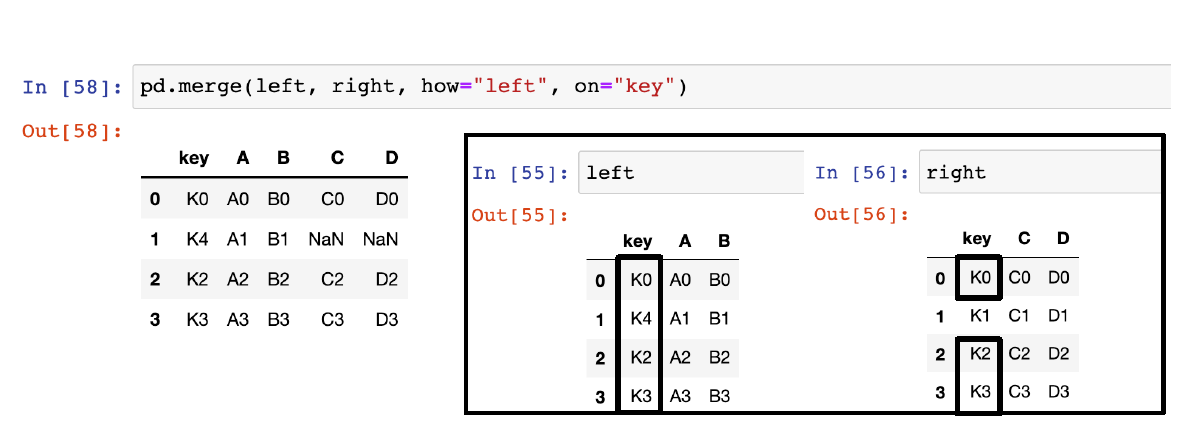→ left에서 key를 기준으로 right 병합