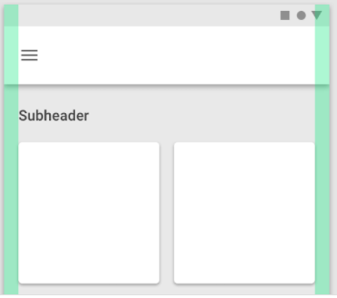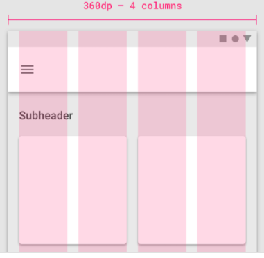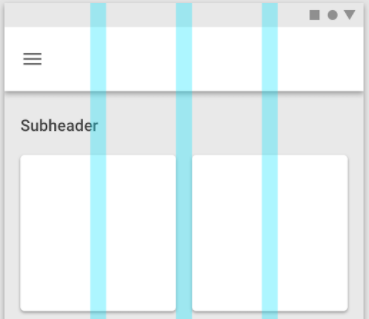 마진은 가장 작은 breakpoint에서 16dp이고(핸드폰), body 부분은 screen의 너비가 커질수록 그에 맞게 늘어난다. 첫 번째 breakpoint인 600dp에 도달하면 마진이 32dp(태블릿)로 커진다.