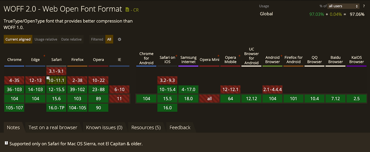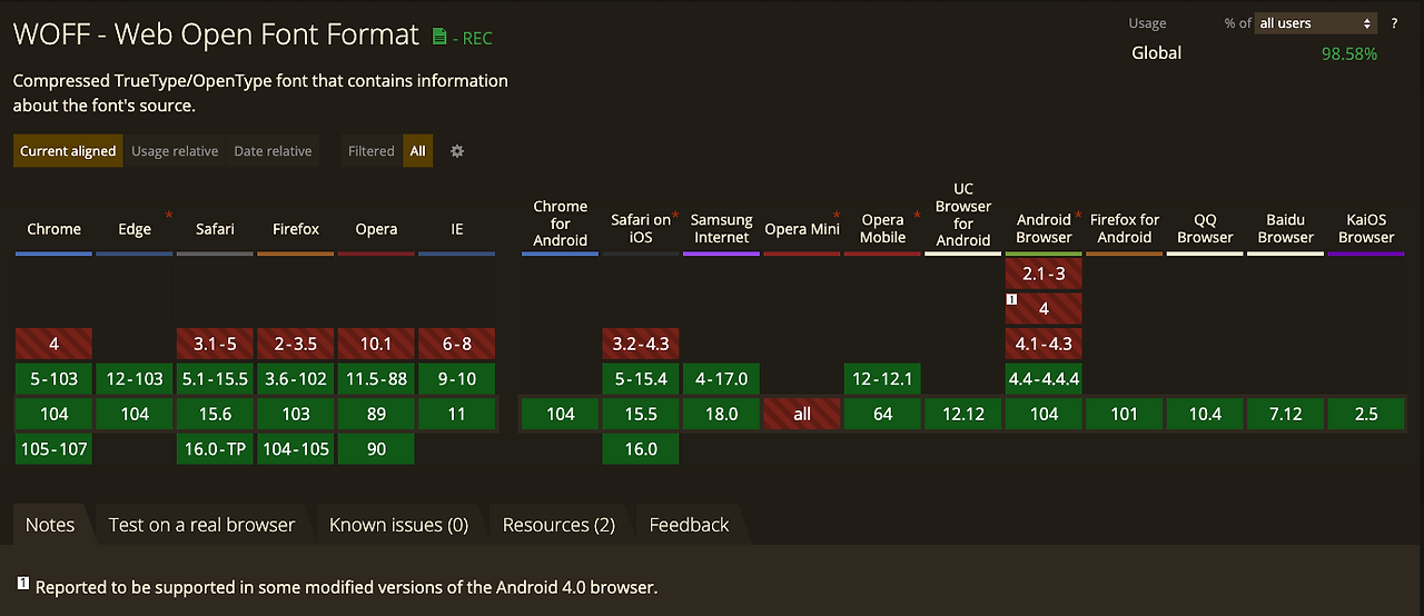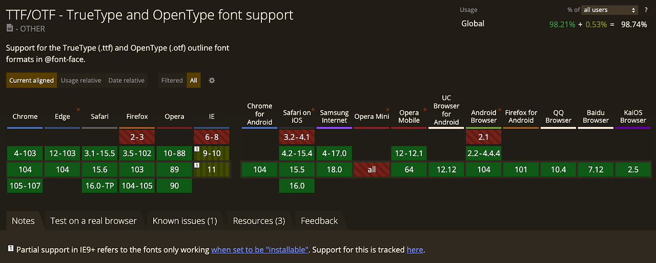 각 브라우저에서 어떤 폰트 확장자를 사용할 수 있는지 알아야 올바르게 폰트를 적용할 수 있다.