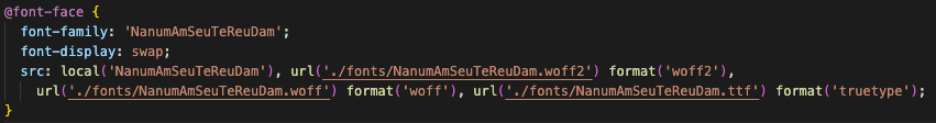 폰트 파일 크기를 줄이기 위해서 woff2 -> woff -> ttf 순으로 폰트를 적용해주었다.