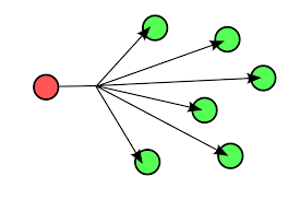 위의 사진처럼 하나의 기기에서 다른 나머지 기기로 통신하는 것을 뜻한다. 브로드캐스트는 CPU에 프레임을 보내기 때문에 속도가 느려진다는 단점이 있다.
