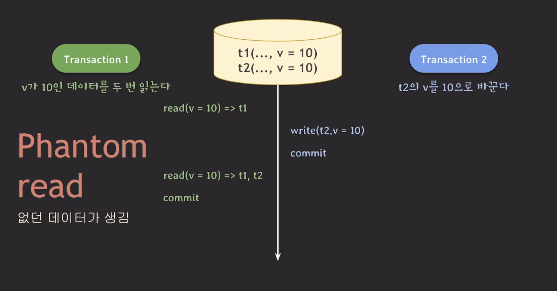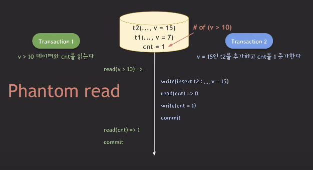갑자기 없던 데이터가 생긴 것도 Phantom Read로 봐야 한다는 것이다.