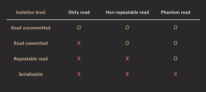 이 표를 통해 Isolation Level의 특징을 정리하면,