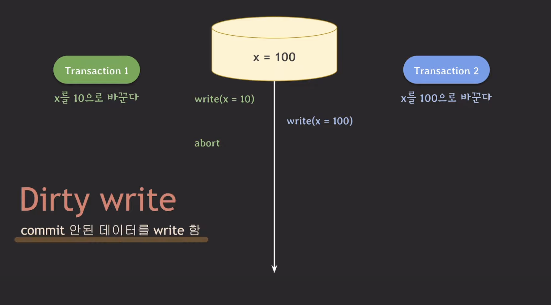 Dirty Write는 커밋이 안된 데이터를 write했기 때문에 발생한다.
