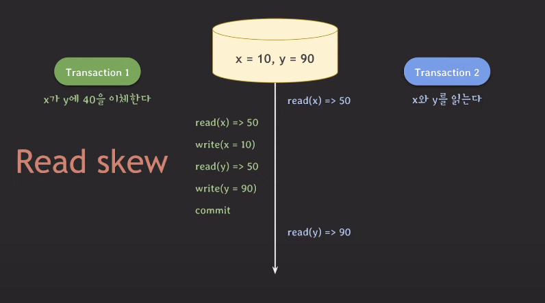이러한 현상을 Read Skew라고 한다. 즉, 불일치하는 데이터를 읽은 것이다.