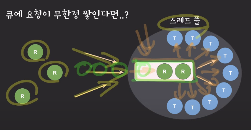 스레드 풀의 큐에 요청이 계속해서 쌓이게 되면