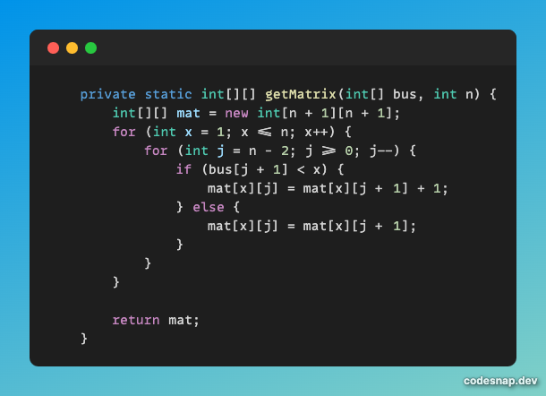 x <= bus[i] 로 하고, matrix[bus[i]][j]에서
