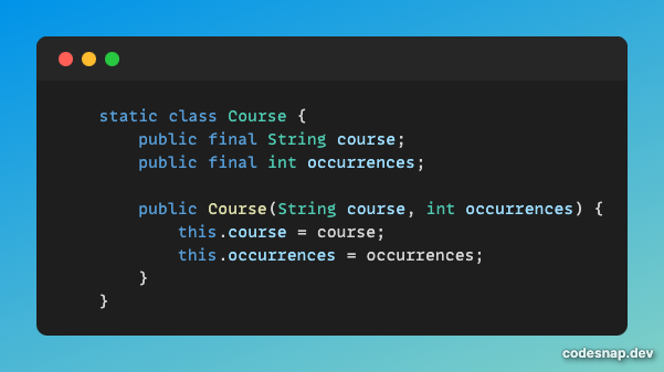 occurrences는 course가 orderList들에서 몇 번이나 나타났는지를 나타내는 정수이다.