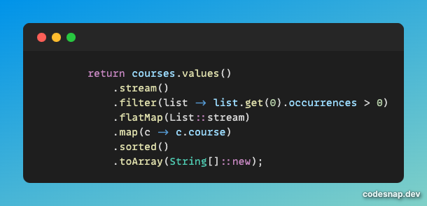 아마 실전이라면 courses.values()로 for문을 만들어서 Array에 넣었을 거 같다.