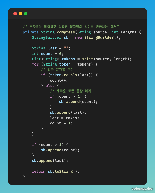 2번, 3번은 compress 메서드 안에 구현했다.
