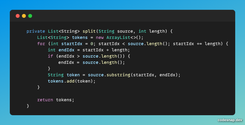 그리고 그 자른 문자열들(tokens)를 반환한다.