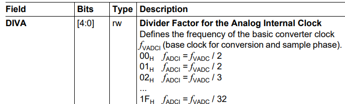 IfxVadc_initialiseAdcConverterClock(vadc, divA);