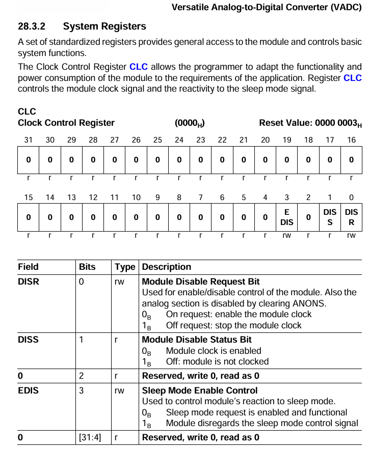 vadc->CLC.U = 0x00000000;